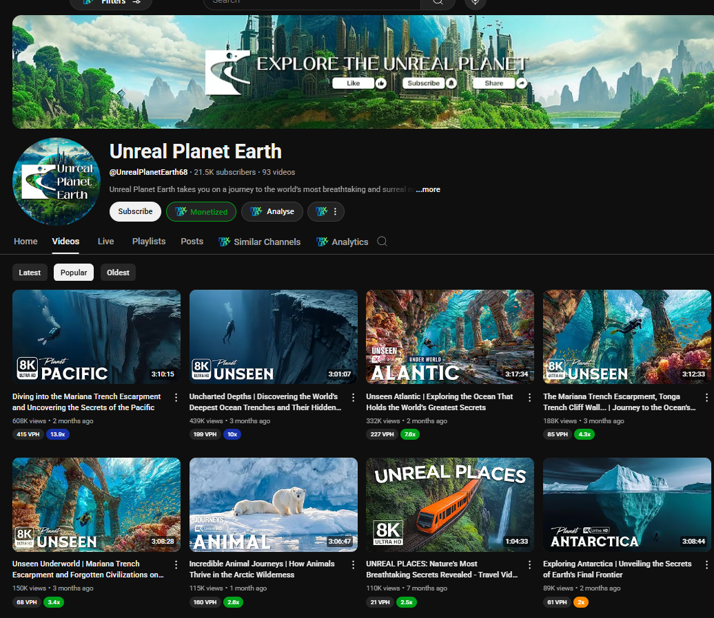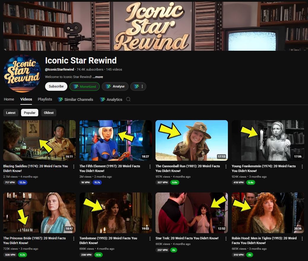 Here are successful channels that demonstrate VidRush-compatible niches, organized by category with visual examples.